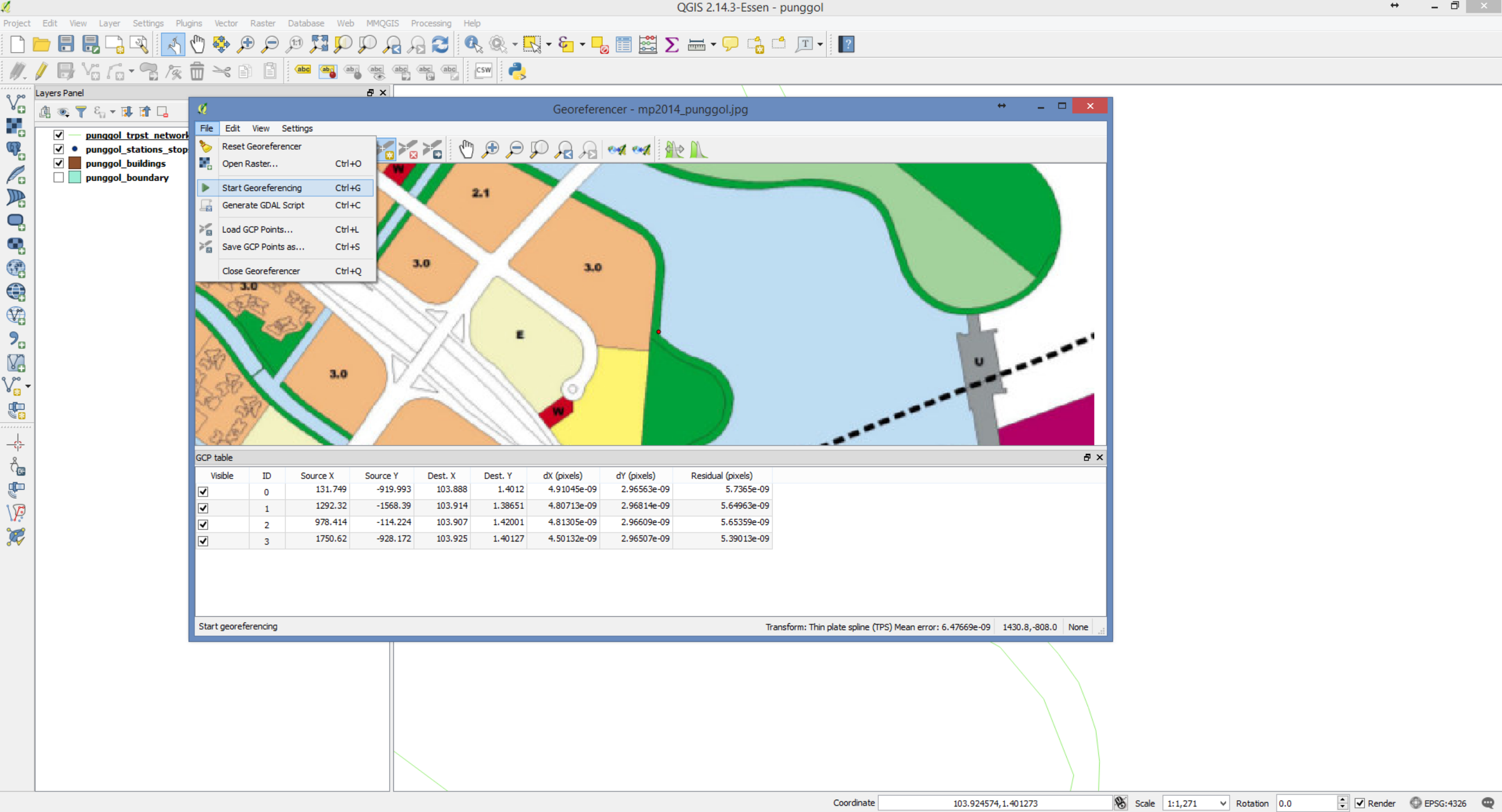 - 3.) Geo-reference the URA master plan map in QGIS.