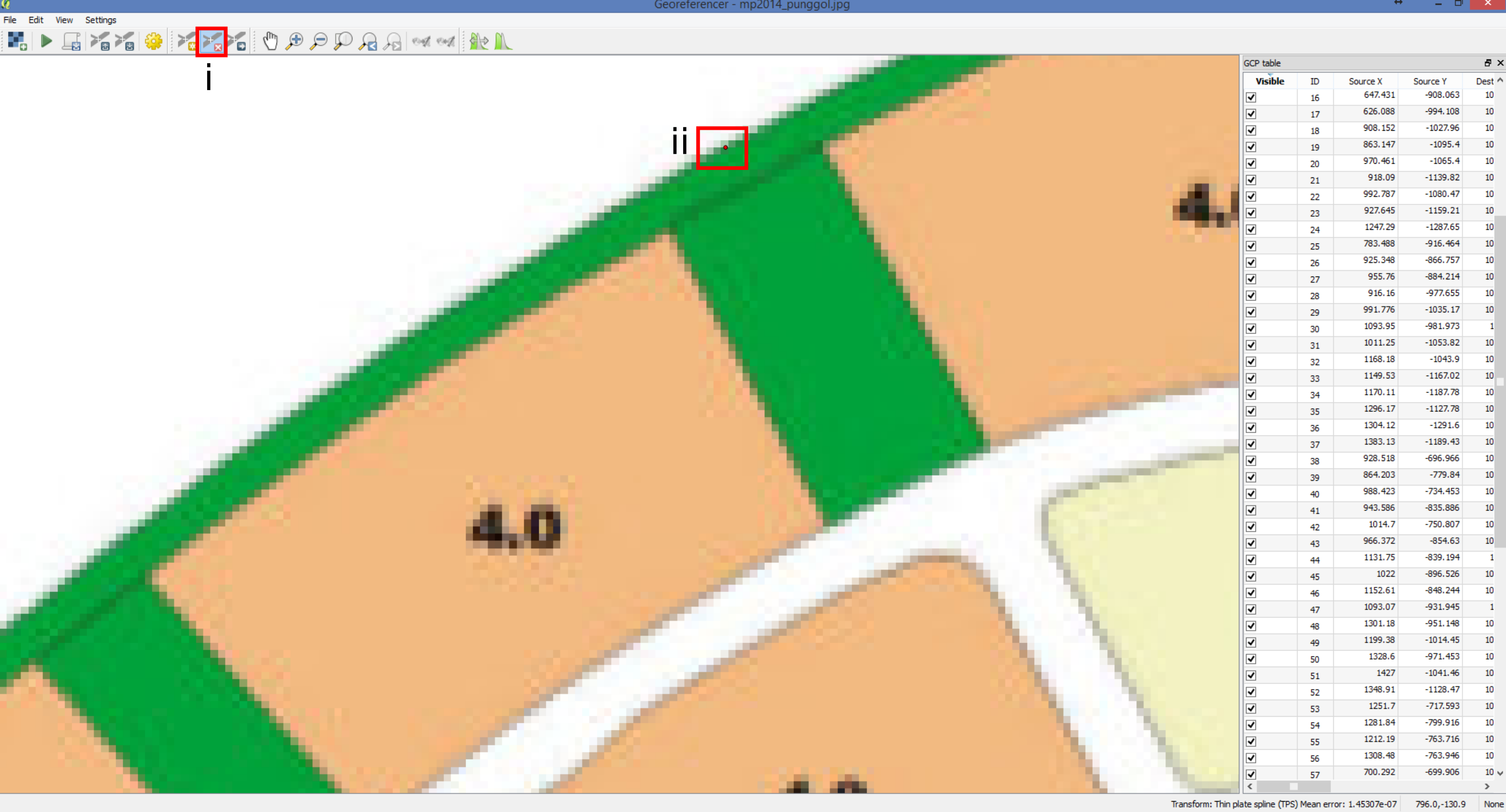 - iii.) Select the corresponding points on the raster image and on the layers.