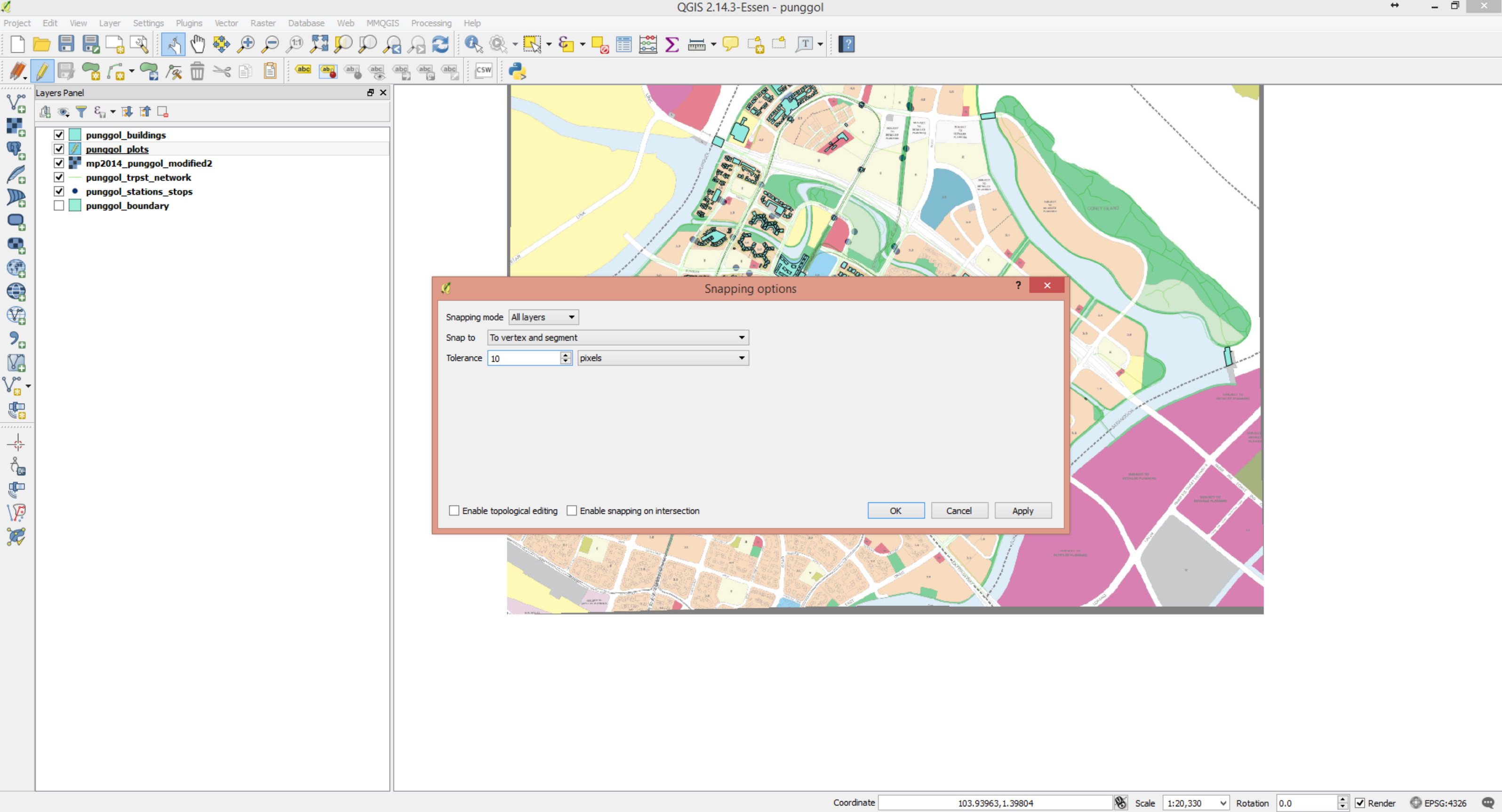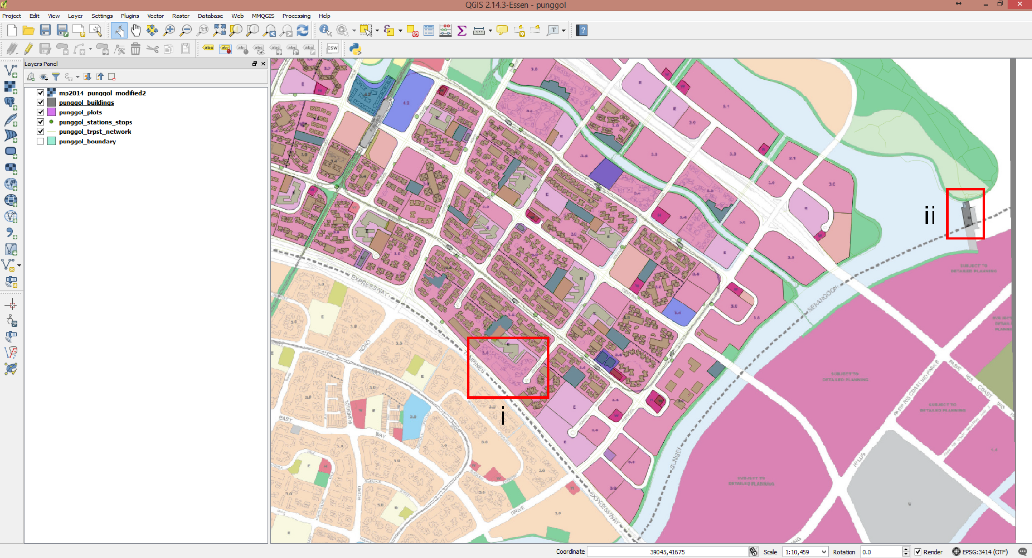 - 4.) Adjust the punggol_buildings layer according to all the overlays of shapefiles.